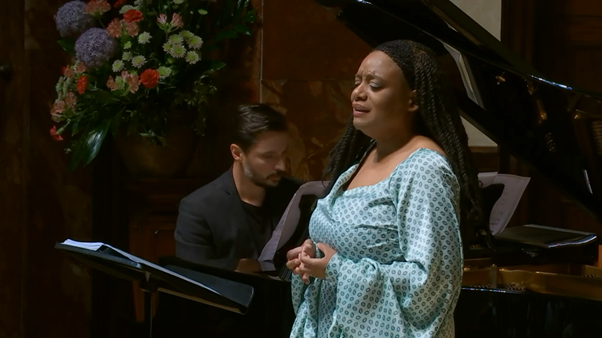 Performing three of Debussy’s Cinq poèmes de Baudelaire, Rand sang with a creamy, opulent voice, Lepper’s lush piano playing beautifully colouring the songs. "Recueillement" (Mediation) was rich and romantic, while "La mort de amants" (The death of lovers) was more contemplative, Rand singing with a deep passion but also a delicate tenderness. A break between French impressionism, Rand’s rendition of Abel Meeropol’s "Strange Fruit" was especially moving, and showed her as a highly skilled communicator.