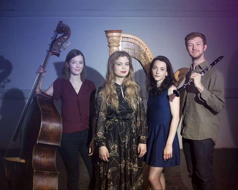 But the crowning visual (and aural) image of the night was the four players, all gathered round the harp, Anne Denholm bowing some strings while bassist Mariane Schofield stroked them to alter their pitch, clarinettist Oliver Pashley played on the body of the harp and Héloïse Werner sat, singing into the soundhole at the back of the instrument. It summed up the group: a superorganism, working together to produce sounds both peculiar and fragile, out of kilter with the world perhaps, but perfectly in tune with each other.