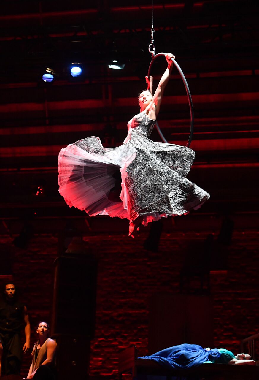 Nothing galvanises an audience quite like physical risk. As soprano Sarah Tynan rose on a hoop into the darkness, intoning the final words of "Départ" from Britten's song cycle Les Illuminations, you could almost hear her heart race. Beneath, a troupe of circus performers held the rope – and her life – in their hands.