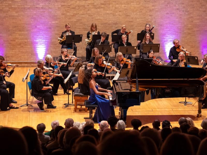 Jeneba Kanneh-Mason played Mozart’s 23rd Piano Concerto, one of his most charming works, genial outer movements sandwiching a delicate and tender Adagio. I didn’t love all of Kanneh-Mason’s playing, which lacked a bit of grace, the last movement brisk to the point of being brusque. But her co-ordination with the unconducted ensemble was deft and her playing of the slow movement, with its chromatic byways, was eloquent and well-judged. Kanneh-Mason’s lovely, limpid encore, William Grant Still’s Summerland, felt more like home turf, her connection with the music evident.The second half opened with Robin Haigh’s Grin, a quirky, enjoyable piece, scored with cute attention to detail and a real feel for texture. For the only time in the evening the lack of a conductor was felt. Despite leader/director Jacqueline Shave’s best efforts there were a couple of slightly wobbly moments in the middle section, where the music in any case lost me a bit. But on the whole I really liked Grin, from the tentative, quizzical opening of string pizzicatos and glissandos, to the final gallop, which built up quite a head of steam. The musical language was contemporary, but with Mozartian wind chords sitting under the surface, and I found it very engaging.