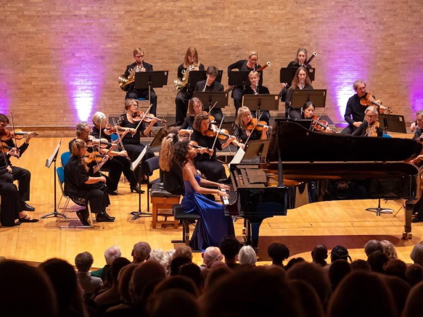 Jeneba Kanneh-Mason played Mozart’s 23rd Piano Concerto, one of his most charming works, genial outer movements sandwiching a delicate and tender Adagio. I didn’t love all of Kanneh-Mason’s playing, which lacked a bit of grace, the last movement brisk to the point of being brusque. But her co-ordination with the unconducted ensemble was deft and her playing of the slow movement, with its chromatic byways, was eloquent and well-judged. Kanneh-Mason’s lovely, limpid encore, William Grant Still’s Summerland, felt more like home turf, her connection with the music evident.