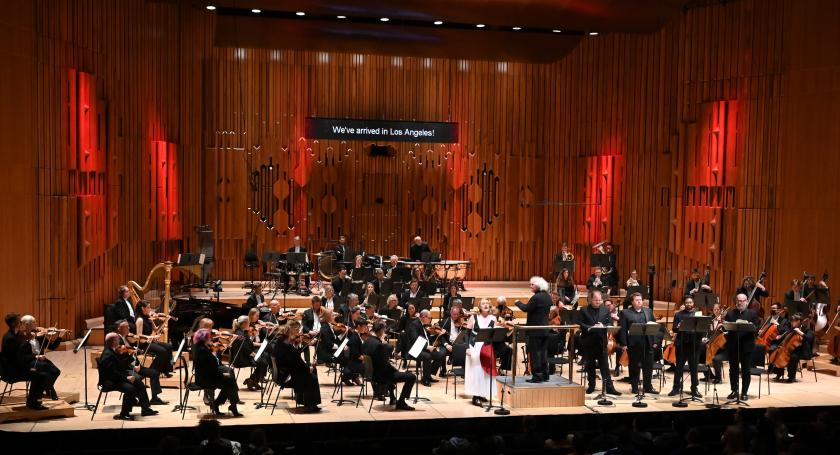 All the same, we savoured plenty of well-seasoned flavours from both Berlin and New York in the first half. Rattle began with the Little Threepenny Music suite, arranged by Weill from the numbers of The Threepenny Opera, with the LSO woods, brass and percussion repurposed as a jazz-scale combo. With the strings yet to enter, Rattle conducted them at the rear of the stage (pictured below) – a Brechtian alienation effect, perhaps, but not one that added much to the ambience. Despite a few lacklustre moments at the outset, perhaps caused by this banishment, the players deftly mixed the piece’s Weimar cocktail of charm, insolence and devilry, with the saxophones (Simon Haram and Shaun Thompson) cheekily to the fore and a corner of reprobate brass nicely lowering the tone. On the whole, Mackie Messer’s knife retained its glinting, slicing edge. For sheer subversive chutzpah, though, I’ve never heard another Threepenny Music to equal the original recording – led by Otto Klemperer, of all unlikely band-leaders. Rattle does grasp that this wicked takedown of the Austro-German canon needs gravity as well as comedy. In the final grand chorale, he emphatically delivered it.
