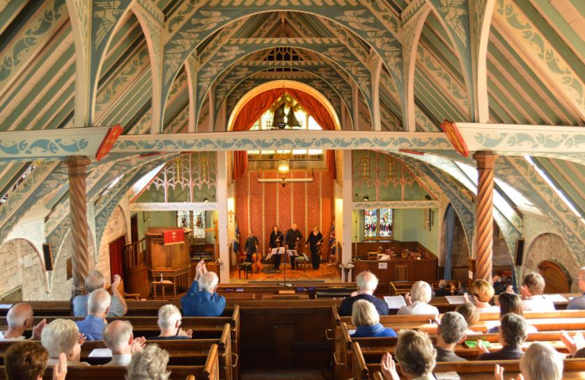 Alongside the Gould Piano Trio, the festival’s other resident artists for 2017 were the period-instrument Quatuor Mosaïques (pictured above), who gave three concerts across East Lothian venues. Their Tuesday afternoon offering – amid the Arts and Crafts splendour of the Chalmers Memorial Church in Port Seton – also offered a nod, as festival co-artistic director James Waters explained, to probably the sole composer to put the Lammermuir hills on the classical map: Gaetano Donizetti, whose Lucia di Lammermoor is based on Walter Scott. The first discoveries from Donizetti’s String Quartet No. 17 were that it even existed, and indeed had 17 bedfellows (he wrote 18 quartets in total). Later surprises were its adventurous textures and harmonies, its guitar-like strummings, and how shamelessly he seemed to have pilfered from Rossini in its energetic finale (drawing a few titters from the audience).