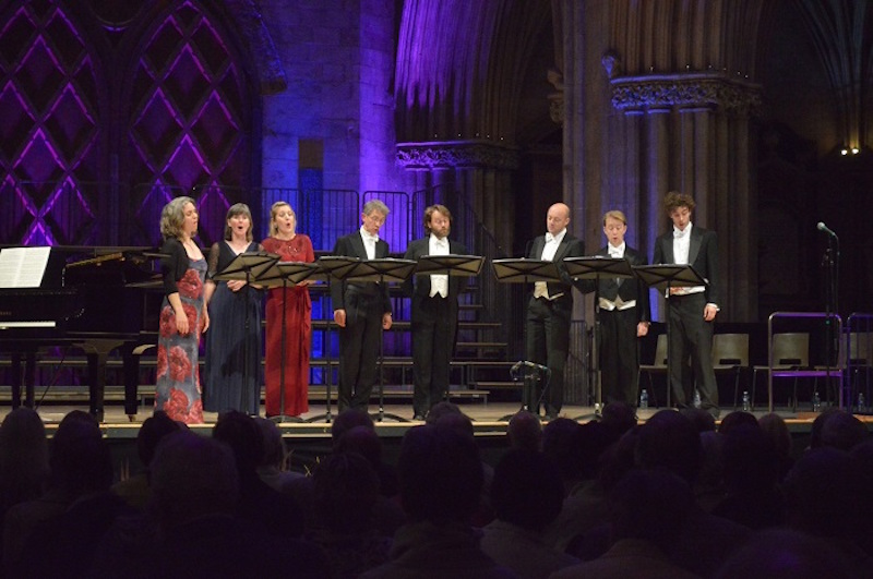 Francaix takes his text freely from Brillat-Savarin’s La Physiologie du gôut, and sets it to a droll, chattering stream of musical consciousness, complete with kitchen sounds, parodies of Chopin and Poulenc and swaggering mock-classical perorations. Hollingworth apparently discovered this almost unperformed score (it dates from 1950) in a music shop in Hereford, and I Fagiolini (pictured below) have now made the first recording. The discs were sold out by the time I got to the sales desk – suggesting that the group’s elegant and superbly nuanced live performance had whetted quite a few appetites for what Hollingworth calls this “vast Gallic giggle”.