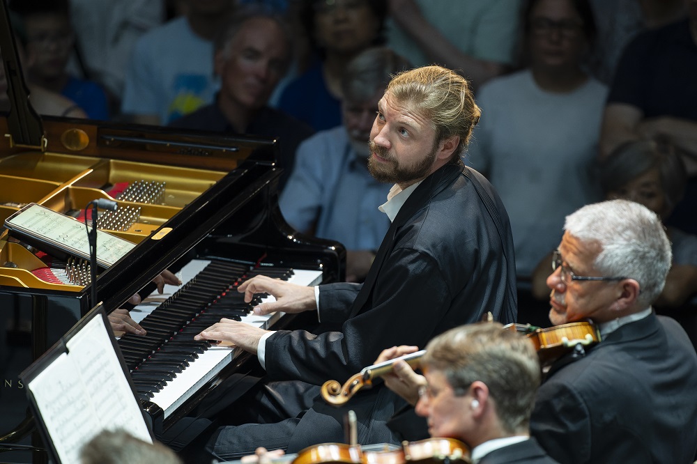 Denis Kozhukhin (pictured above) is one of those pianists who “own” the utterly delectable Ravel G major Piano Concerto - Bavouzet, Chamayou and Osborne are among the others – though his way with it is characteristically individual: more romantic than jazz-age, playing with some of the solo passages in the manner of inspired improvisation. In this he was perfectly matched by RPO harpist Suzy Willison-Kowalec in that bewitching passage where the first-movement romp comes to a standstill. RPO woodwind, as good as any in London, carried off their air-cooling solos in the Adagio assai – we needed them on a sweaty, stormy evening where the air conditioning of the hall wasn’t much help – and shrilled piercingly in the Jacques Tati-esque finale.