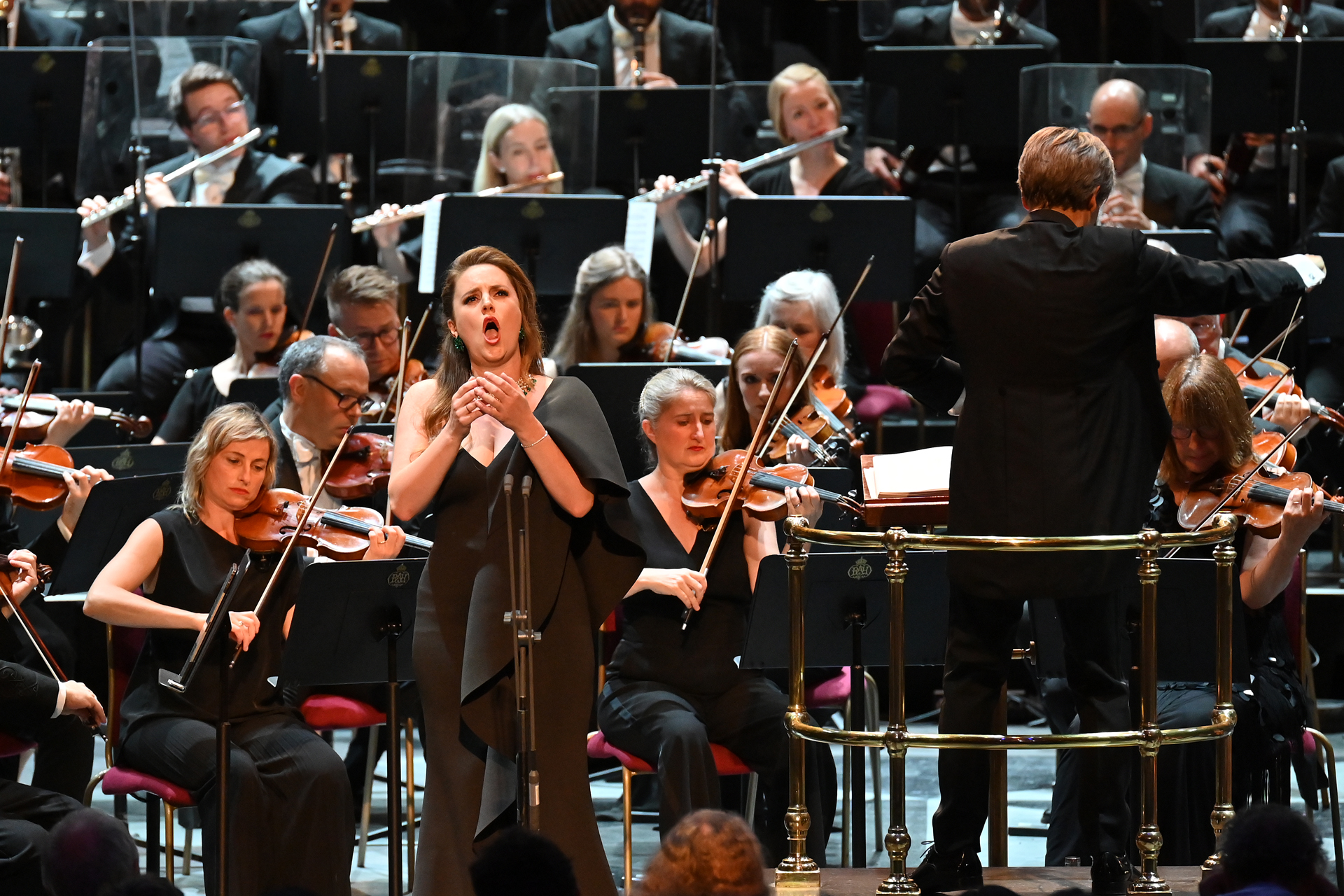 In the Four Last Songs, Louise Alder brought all her radiance of tone, expressive phrase-making and precision of diction to the peerless series of elegies that Kirsten Flagstad premiered here at the Royal Albert Hall in 1950. Of course, full orchestration in a vast barn like this necessarily creates a mood far from the hushed intimacy of the recital room. But Alder (pictured below) managed to make the spaces shrink with the lustrous lower reaches of her soprano, while her top notes glided heavenwards and somehow, without undue strain, cut through the rustling, murmuring forest of the orchestra behind her. Principal horn Paul Klein (in stellar form throughout) achingly captured the wistful solo of “September”, while the orchestra’s leader Tamás Kocsis complemented the soaring rhapsody of the leave-taking voice in “Beim Schlafengehen” with his own gorgeous farewell melody. Enriched with a lifetime’s opera-house expertise, these songs must sound like arias, not just static prayers. Together, Alder and Rustioni conveyed their dramatic pivots of colour and feeling as well as the twilit serenity of the overall effect. Rapt and still, silent at the close, the audience played its part too.