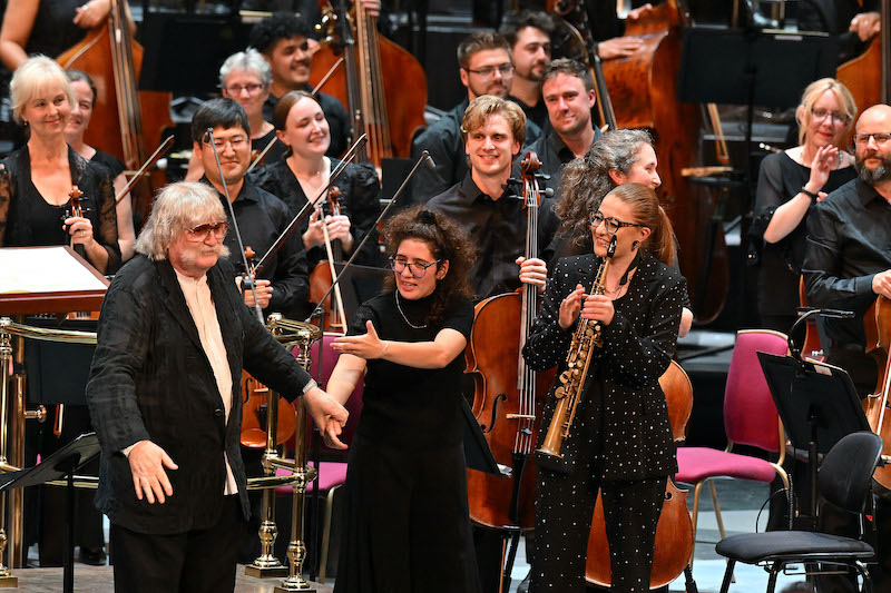 There was more to like in Karl Jenkins’s Stravaganza, a showpiece for soprano saxophonist Jess Gillam. Although Jenkins (pictured above by Mark Allan) can be the embarrassing uncle of classical music, the biggest virtue of the piece was that he wasn’t taking himself too seriously. (I reviewed his album One World for theartsdesk last year and boy is that grandiose.) Here for all the occasional cringey bit, the writing for both sax and orchestra was excellently crafted and the result well-balanced, the music engaging – especially in the second movement – and an ideal vehicle for Jess Gillam’s talents.