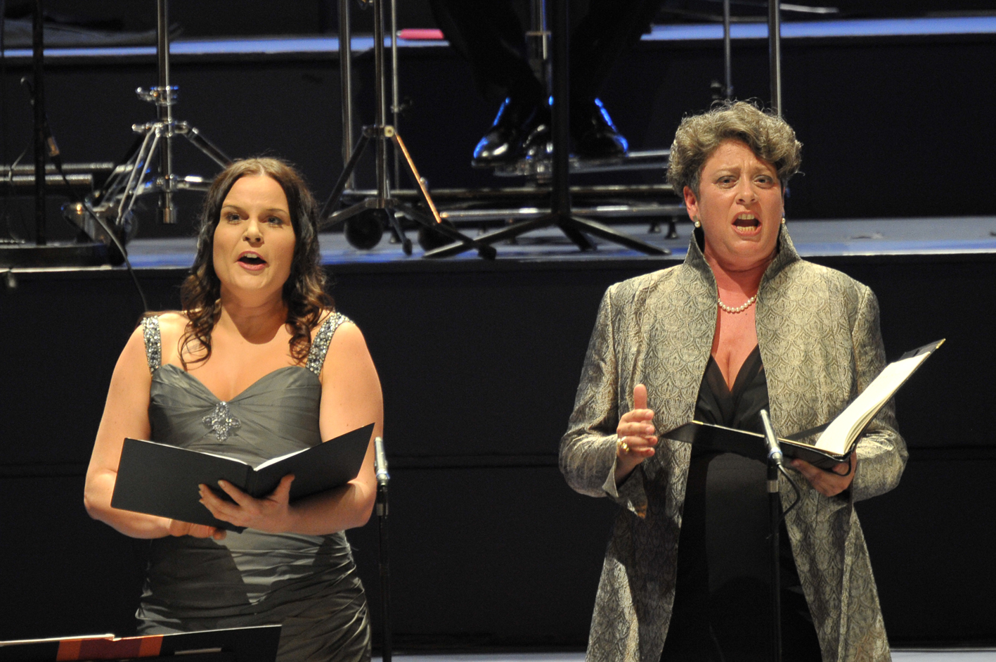The old-fashioned intermezzo-minuet may have been a little faster than usual, but I liked that; orchestral sophistication came hand in hand with a Bavarian easy-goingness, a gemütlichkeit, which is the next best thing to Austrian Ländler lilt. The fish who listen to St Anthony’s sermon in the song on which the third movement is based, and who slither off without having learnt anything, were supreme watery waltzers, their earthly vanity dispelled by the majestic-maternal tones of a world-class mezzo I haven’t encountered before, Gerhild Romberger (pictured right with equally fine soprano Genia Kühmeier), in the celestial song of “Urlicht”.