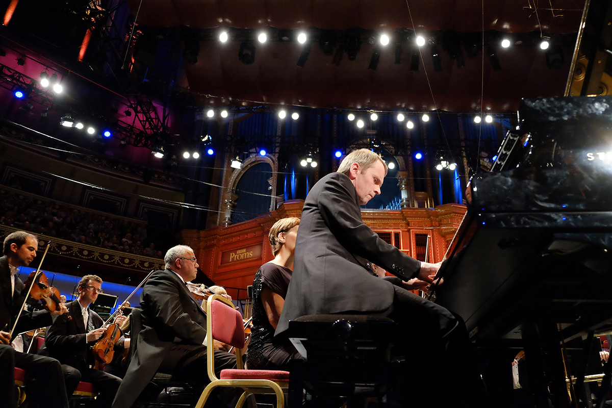 I wondered if this was because of the Royal Albert Hall’s acoustics, but it wasn’t a problem in the second half, where the big moments of Turangalîla had no difficulty filling the hall (solo pianist Steven Osborne pictured above). Messiaen’s symphony is a massive piece lasting some 75 minutes in 10 movements, and is a maximalist paean to erotic love. It incorporates all the elements of Messiaen’s composing technique: rich (even gaudy) modal harmony, Indian-inspired isorhythmic cycles and birdsong.