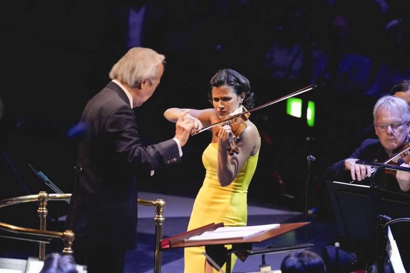 In sunburst yellow, Elena Urioste (pictured above) made a thoroughly engaging case for the Coleridge-Taylor concerto, her airy, silvery tone and fine filigree detail well matched to its melodic invention and elegant reveries. Coleridge-Taylor wrote it for American violinist Maud Powell, one of his champions, and originally planned a piece rooted in African-American spirituals. Something of that conception survives in the bittersweet harmonies of the memorable theme that drives the Maestoso first movement. But overall, the style feels nearer to the ecumenical song-like lyricism of Dvořák’s American phase: vernacular in its shadings, yes, but not culturally specific. No matter: Urioste’s ravishing cantabile touch made the most of a dominant solo part while the orchestral accompaniment very much plays second fiddle.