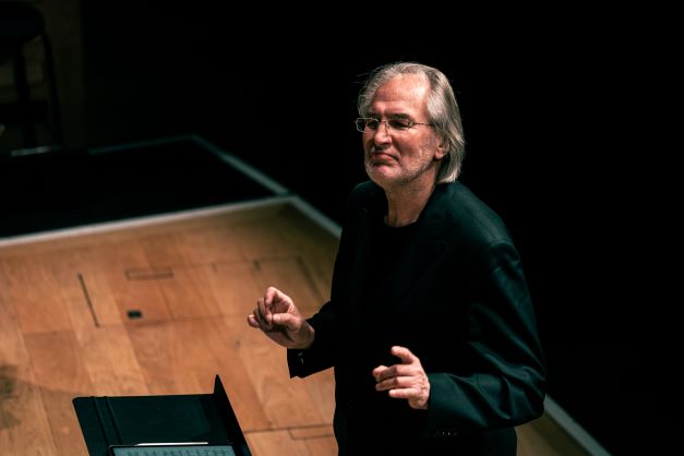 Kaljuste (pictued below by Matthew Johnson) gives minimal gestures, but the effect they have, the way they convey meaning to the choir, is palpable. He opens the left hand as if to release magic dust. He points an index finger as if dotting an "i". Or he just smiles gamely for the briefest of moments at a singer – who then knows exactly what is expected.