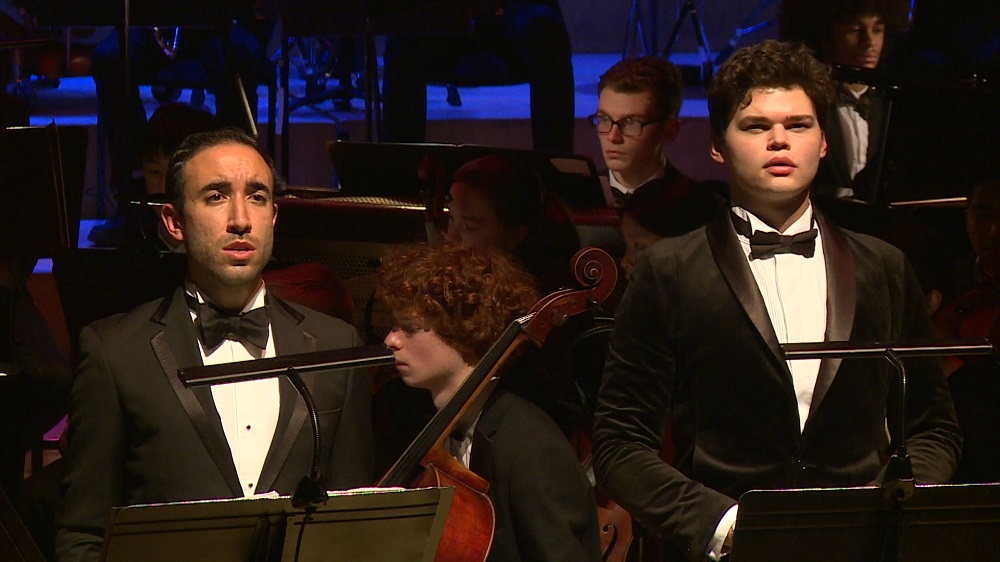 Moloch's troops rollicked into war to the strains of Berlioz's "Rakoczy March"; Suzman's delicious Mephistopheles speech from Goethe's Faust was followed by the" Ride to the Abyss" from the other end of The Damnation of Faust. First-class singing here from Guildhall students, tenor Brentan Spiteri and 22-year-old bass-baritone with a very bright future Thomas Mole (the two pictured above), who conveyed Mephisto's soul-claiming with perfect command and a voice of astonishing maturity.