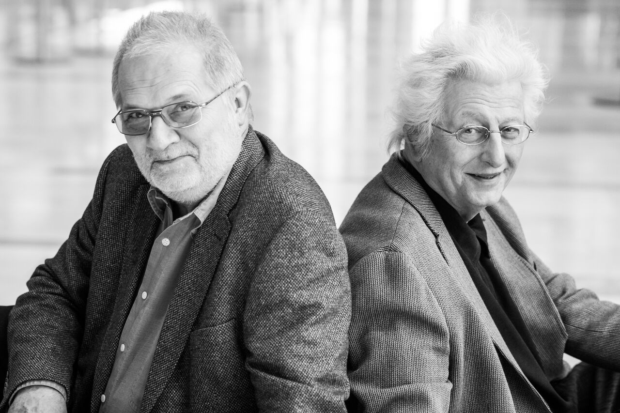 Eötvös's score, with the composer conducting the Vienna Philharmonic in their third performance, came across as bewitching, febrile, multi-layered. His Ligetian ear for atmospheres and tensions was broken up by the razor-sharp Hungarian Radio Choir's "Hallelujas" from Schein, Monteverdi, Bach, Handel, Mozart, Musorgsky, Bruckner and gospel music. The scene is set in Part One with eerie orchestration of Schumann's "The Bird as Prophet". Unusual, this collage of quotations, for Eötvös; the chorus represents, according to Esterházy, "the voice of a small group within a larger society whose job it is to sing hosannas and hallelujahs the live-long day". (Pictured below: a unique double portrait of Eötvös and Esterházy, taken this February by Szilvia Csibi for Müpa Budapest.)