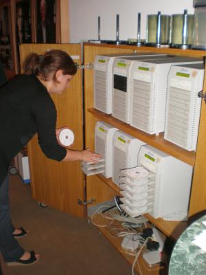 This Eighth certainly contained whole swathes that you’d want to hear again and again. Which you could, immediately after the concert, thanks to the fact that the Gürzenich-Orchestra is one of the few in the world to have embraced the once much-touted takeaway CD policy with its GO live! series. Minutes after the lengthy standing ovation had ended, a team of young orchestral helpers stood loading discs into multiple machines behind a desk in the foyer (pictured below) and taking the statutory ten euros from any punters who wanted an instant souvenir.