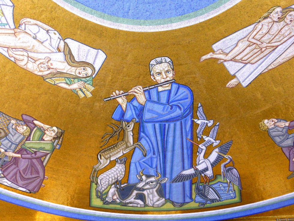 The afternoon was spent in the old Danish National Theatre, which still hosts Mozart, Handel and Gluck but can’t properly accommodate Wagner and Strauss. That was one reason for the building of the lavish new opera house (Operan) over the water. Nielsen as Tamino greeted us in the mosaic of great Danes on the roof of the passageway connecting the theatre with Danish Radio's first headquarters (pictured above).
