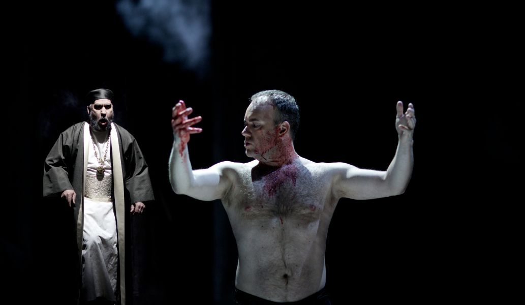 The more complex side of the piece is crystallized when heroic baritone Johan Reuter’s Saul (pictured above) sinks into a depression, only to be soothed by the song of David (Heldentenor Niels Jorgen Riis, more shaggy Jokanaan in Salome than beautiful boy). Nielsen himself embraced both sides, and more; Schønwandt bought my suggestion that the “Four Temperaments” of the absolutely contemporary Second Symphony are aspects of the composer, and suitably interwoven in each movement.