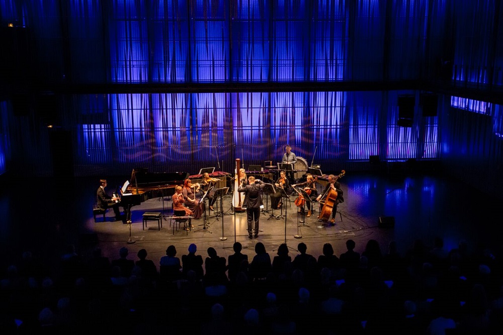 Cosmic wonders were expressed in two unforgettable performances. Ólafsson premiered a new piano piece by Skúli Sverrisson, Miranda, about the absence of gravity in outer space. It struck the listener as hauntingly simple, and a bit like Ravel’s "Ondine" in Gaspard de la Nuit in its interplay of left-hand melody and right-hand incandescence. But the upper-register starriness, Ólafsson assured me, was a subtly shifting pattern that proved the very devil to get absolutely right. It didn’t sound it. And why have I never heard Kaija Saariaho’s Lichtbogen before? It’s a relatively early work from 1986, a response to the Northern Lights, which you wouldn’t need to know to register its extreme refinements, the treble on the threshhold of what the human ear can take (the ensemble conducted by Bjarni Frímann Bjarnason pictured below).