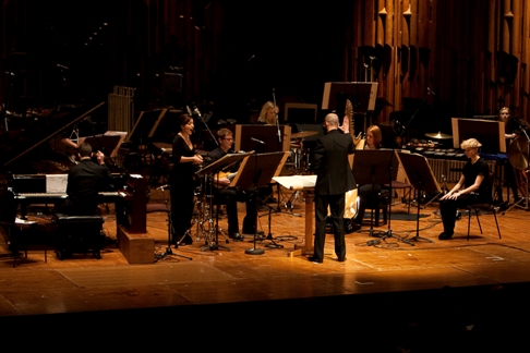 The element of theatricality, present in MacGregor's vocalisations and engagement with the intestines of her piano as well as the stage moves of soprano, treble and oboist, rockets in the handful of big orchestral works presented in the evening concert. Their rigour and focus were in no way matched by Montague's foyer performance piece Lux in tenebras, though that ticked all the right boxes and the right spirit in terms of community involvement.
