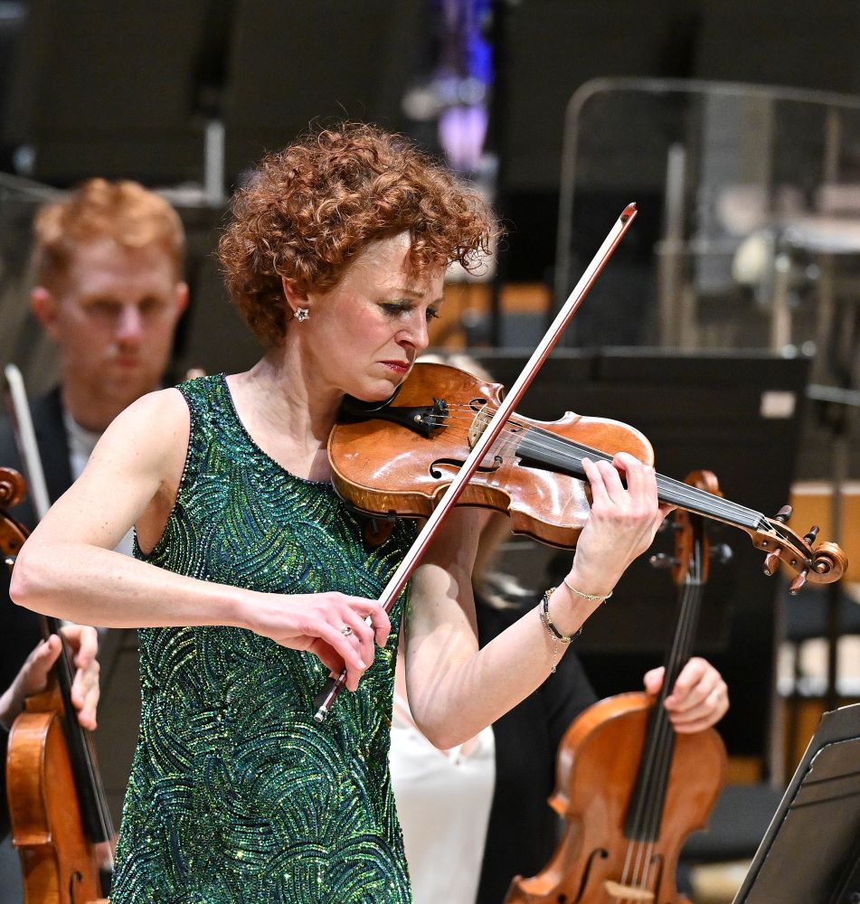 In his Serenade for violin, strings and percussion – it’s a pity Pappano didn’t at the beginning of the concert utter the words “Plato’s Symposium” or “gay love” – Bernstein strikes memorable gold for each of the ancient Greek male celebrants in turn; this is surely his most vivid concert-hall work (if one counts MASS as a thing apart). Janine Jansen, arguably the finest violinist in the world today, had the flu, but Carolin Widmann (pictured below), a late replacement, would certainly do. Her tone right at the exposed start wasn’t remotely beautiful, as Jansen would surely have made it, and as Baiba Skride so unforgettably did in a Dublin performance; but she knows the work inside out, had the forthrightness for the extrovert passages and the virtuosity for the “Eryximachus” scherzo, and worked infallibly well with the orchestra and Pappano – perfect teamwork.