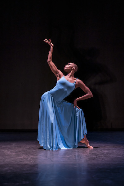 Crespo’s command of the folkloric dance styles of Cuba – and I'm guessing also her spectacular body – inspired a solo, Impronta, by Maria Rovira. She's the Spanish choreographer who a few years back created the dances for Yuli, the feature film about Carlos Acosta’s life. Here, luminous in a swirling dress of Caribbean blue, Crespo (pictured right) wows with her virtuosic physicality, the undulations of her back proving just as expressive as her long, strong arms. José V Gavilondo’s score brings the dance to a stomping rhythmic climax that feels like ancestral catharsis.