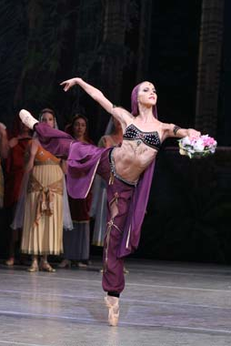 Even for a ballerina, in an art where physical evolution seems to move twice as fast as anywhere else, Somova is peculiarly flexible. She throws her leg high over the vertical, even in a long skirt. She leaps more like a hurdler than a drift of silk, her very long legs flying weirdly above horizontal. Eye-catching it is; classical, beautiful, musically eloquent it is not.