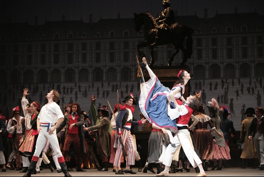 Rising star Olga Smirnova shadows Zakharova, like her a St Petersburg-trained girl, in the first three ballets, and the explosive young couple who quit the Bolshoi and have just been tearing the London Coliseum roof down with their shows with the Mikhailovsky Ballet this week, Natalia Osipova and Ivan Vasiliev, give one performance of a ballet created for them by former Bolshoi director Alexei Ratmansky, The Flames of Paris (pictured right, by Damir Yusupov/Bolshoi Theatre).