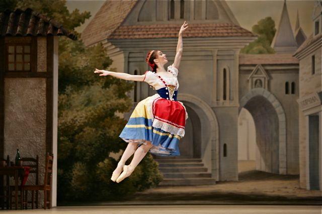 Swanilda herself is a tonic for the eyes in colouring-book yellow, red and blue, with a little embroidered red cap, while Franz - in the manly form of Ruslan Skvortsov - is some six foot of handsome hunk in shades of garnet, his long legs smoothly sheathed in velvet, and wearing a straw hat trimmed with more fruit and veg than Carmen Miranda’s. It is all simply delectable.