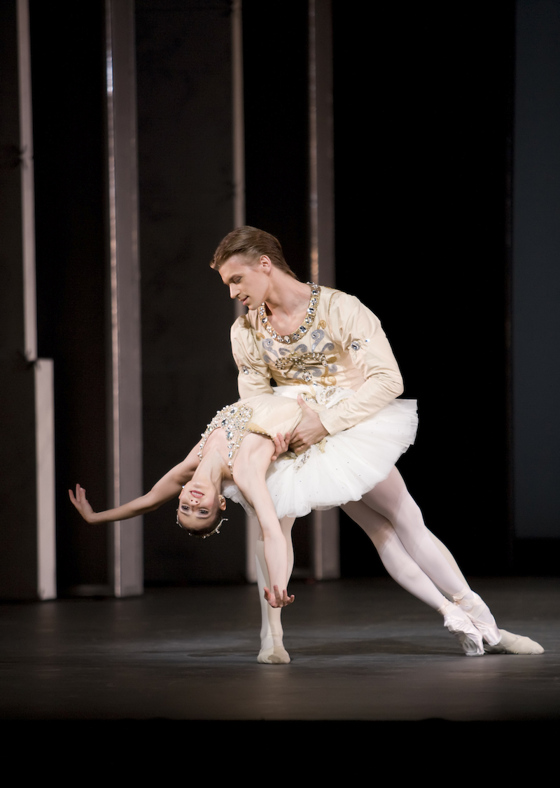 Diamonds is a ballerina’s best friend - it’s the section of the triptych that they all long to be cast for. It was created by Balanchine for the instinctive daring of Suzanne Farrell, who with Peter Martins made something of almost glacial perilousness of the magnificently intense, long pas de deux. Farrell was famous for a control for balance so exact that she could tilt almost any which way as she wheeled in diving arabesques. The audience's sense of risk, of danger, of potential breakage of trust between man and woman, is what makes this astonishing pas de deux a psychological rather than stylistic derivative of Swan Lake.