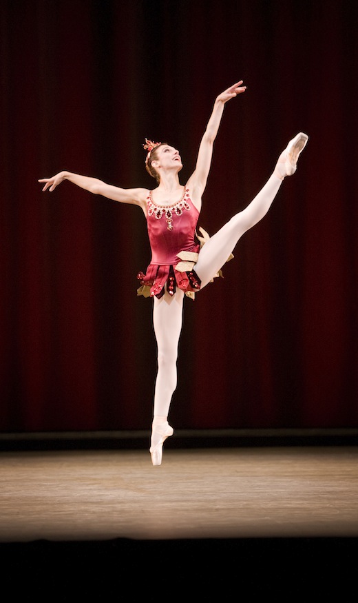 Leanne Benjamin, blithe and childlike in her Sicilienne solo, becomes alert and presentient in her haunting “walking” duet with Nehemiah Kish, her raised leg marking out the ticking by of time. There’s incipient loss in almost every lovely image of this super-beautiful ballet. If only the corps de ballet had conveyed a personal identification with it.