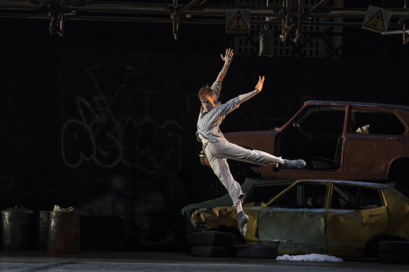 Giving repeat exposure to a work that so starkly divided audiences first time round was a calculated risk. There was always the chance that a quarter-century’s distance might bring a new perpective on it, make us see what MacMillan was getting at. But I don’t think we do. The Judas Tree is wilfully obscure, despite a naturalistic look that tricks us into thinking otherwise. The stage shows a building site at Canary Wharf – totem of the shiny, thrusting 1990s, but as yet a wasteland of graffiti and dumped cars. Teams of workmen on the night shift are delivering girders. One of them, unwrapped, turns out to be a scantily clad woman. The music (by Brian Elias), sinister with steel pans, tells us this won’t play well for her.