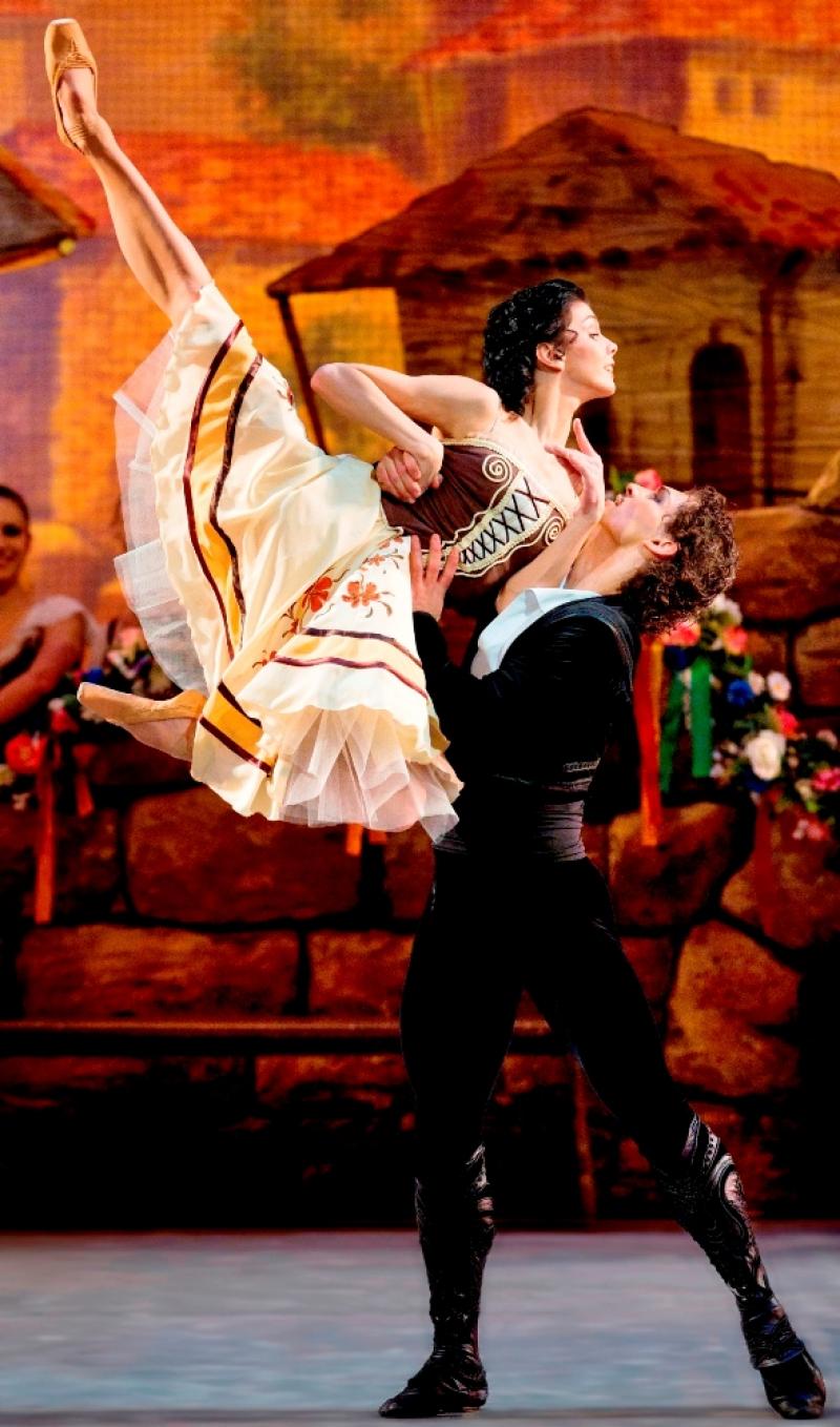 Based on the 17th-century playwright Lope de Vega’s Fuente Ovejuna, Laurencia tells of the wicked ruler Don Fernán, who spots the lovely Laurencia (Natalia Osipova) as she is dancing with her fiancé, Frondoso (Ivan Vasiliev). Frondoso protects her at some risk to himself, and instead Don Fernán and his men assault their friend Jacinta (the lovely Oksana Bondareva).In Act II, the Don returns, abducts both Laurencia and Frondoso, assaulting Laurencia and imprisoning her lover. She escapes and rallies the townspeople to revolt. They storm the castle, kill the evil ruler and liberate Frondoso. Everyone (spoiler alert) lives happily ever after.