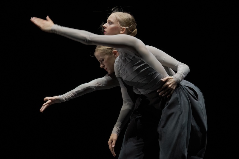 As the strings’ stridently repeated D-sharps make their presence felt against the generally benign D major, five girls in Romantic tutus mark the pulse in decorous promenade, wrists neatly held in first position, heads tilted just so, smiles fixed. Meanwhile the modern couple stand at ease, eyeing each other up. He wears a T-shirt and slacks, she has long swishy hair. The couple’s lack of poise, of emotional restraint, is in marked contrast to that of their classical counterparts. Yet as the music winds on, it’s the latter whose story holds us. I found myself wanting the modern couple, with their disinhibition, their tedious full-on-ness, their sulks and sweaty hugs, to keep out of the way, still better, clear off. It occurred to me that the choreographer might even have had that in mind.Gen-Z Emma Portner’s contribution, islands (obviously too cool to capitalise), is a glacial duet for two women who may or may not be conjoined by their drapey low-slung trousers. The pair (pictured above) certainly stand very close together for a very long time, and the variety and super-precision of their crisp, synchronised movements is mesmeric. Flinging off the trousers liberates the pair to run and leap. There is some fun with vertical and horizontal planes, and a nice set of variations on that old vaudeville gag where one person, seated, appears to have the other’s legs. But this stops short of cuteness thanks to a strong sense that these two intimates are not just athletic cyphers or victims of flukey fashion but possibly two people who care about each other.