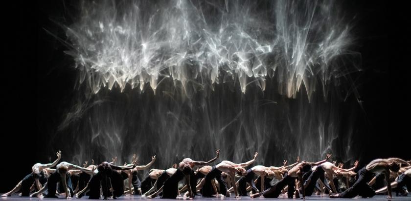 Pite’s partner in work and in life, Jay Gower Taylor, provided the inspiration for Angels’ Atlas, with the result of experiments he’d been conducting into reflective light. His effects, created in real time on the back wall of the stage, are so awe-inspiring you feel an urge to "oooh" and "aaaah" as at the best kind of fireworks show. Yet these effects are monochrome: white cascades of what could be curling smoke or steam which slowly disperse like jet trails. And, like cirrus clouds, they are constantly changing. Their effect on the viewer is made more complex by a soundtrack that includes seraphic choral church music (including Tchaikovsky, sung in Russian) and terrifying rumbles that could be falling masonry.