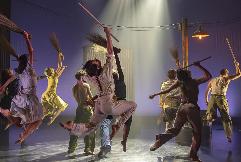 Based on the novel Hill of Fools, the piece was created by the multi-tasking Mthuthuzeli November, who provided the choreography, and also contributed to the music and set design. It is a familiar story, but he brings to it a thrilling energy and exuberance, especially in the fight scenes, where the whole company is onstage squared up against each other. Women threaten other women with large broom heads; the men resort to sticks. Chun’s brother (Antoni Cañellas Artigues), an over-zealous defender of her virtue, dances like an angry beast, pawing the ground with his feet and leaping like an enraged hyena (though he seems to be too late as she pats her stomach several times, hinting she is pregnant).