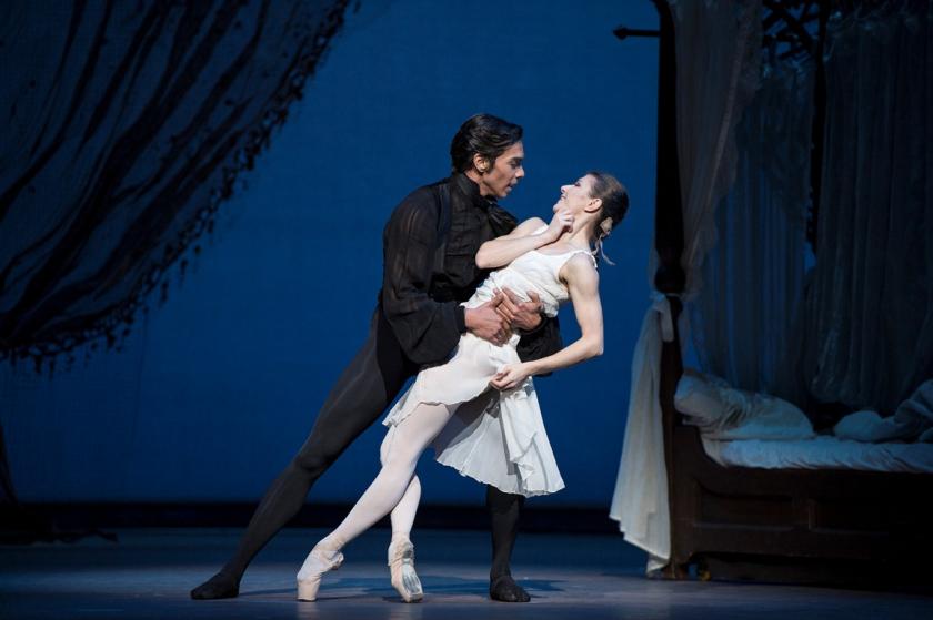 Cojocaru in the early scenes was recessive as the dreamy Tatiana. It was with her entry with Olga, as they attempt to prevent the duel, that her emotional force could begin to dominate the evening, and from there on her laser-like focus never wavered. The later scenes, with her husband, can be some of the most touching in dance, and Gartside’s tender care and admiration for his wife built up a picture of that great theatrical rarity, contented love.