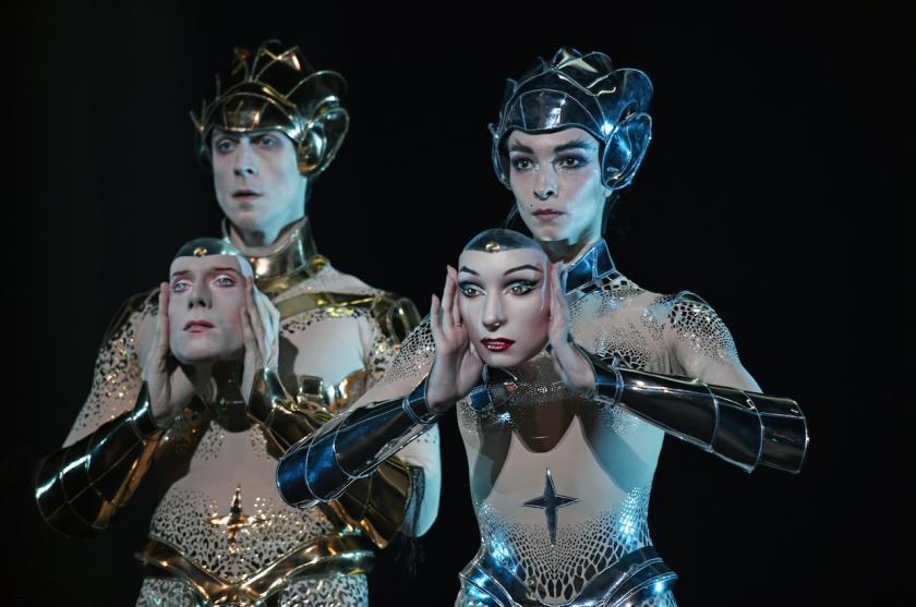 "My Little Pony From Outer Space" seemed to be the theme as Bolshoi prima ballerina Olga Smirnova and the Royal Ballet’s Edward Watson (main picture, and below) stepped out on the stage of the Coliseum virtually naked but for chrome helmets, chrome shin-guards and a membrane of glittery fish scales. They also wore masks of their own faces which they later discarded, Watson swapping his for Smirnova’s (let’s hear it for gender fluidity!) to only mildly disconcerting effect.