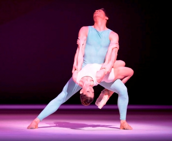No such problems with Alastair Marriott’s Sensorium (pictured right, with earlier cast Leanne Benjamin and Thomas Whitehead, photo Johan Persson/ROH), which is the height of stylish good taste in its designs by Adam Wiltshire and gorgeous lighting by John B Read. A huge curl of what appears to be a slashed sheet of paper looms over the dancers, elegant in blues and grey-whites.
