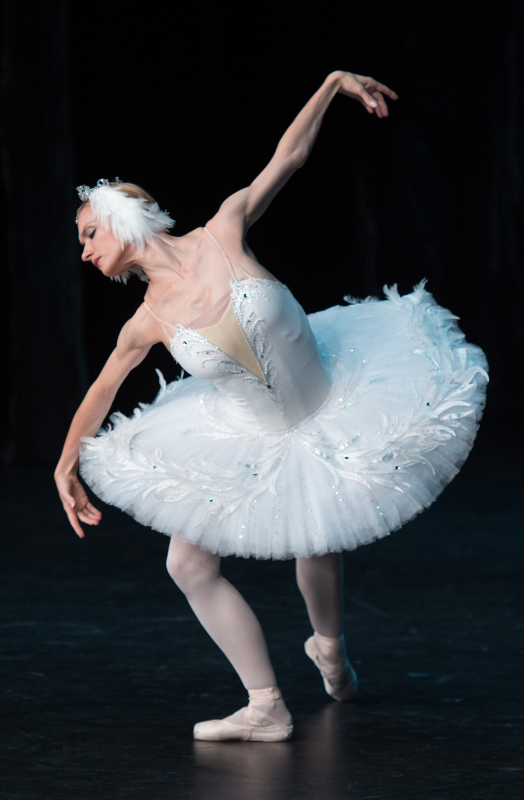 When he meets Kolesnikova's Odette, it's she who makes all the going; he barely has time to ask who she is before she's acting out her suffering with a practised intensity that is dramatic, but not (to me) convincing. She looks like she's here to be the prima ballerina in Swan Lake, not to tell us a story about love, hope, deception and betrayal. With her regal bearing and elegant arms and back, she can look exceptionally refined in static poses (pictured below left), but in motion I found her too stagey, flinging herself about with a combination of grandeur and artifice aimed entirely at the audience rather than her partner, and taking over long applause-forcing bows between variations. She's, unsurprisingly, better as Odile: that commanding air is more fitting for the seductress and is complemented with a wolfish smile and commendable – if again rather stagey – attack in the fast sections.