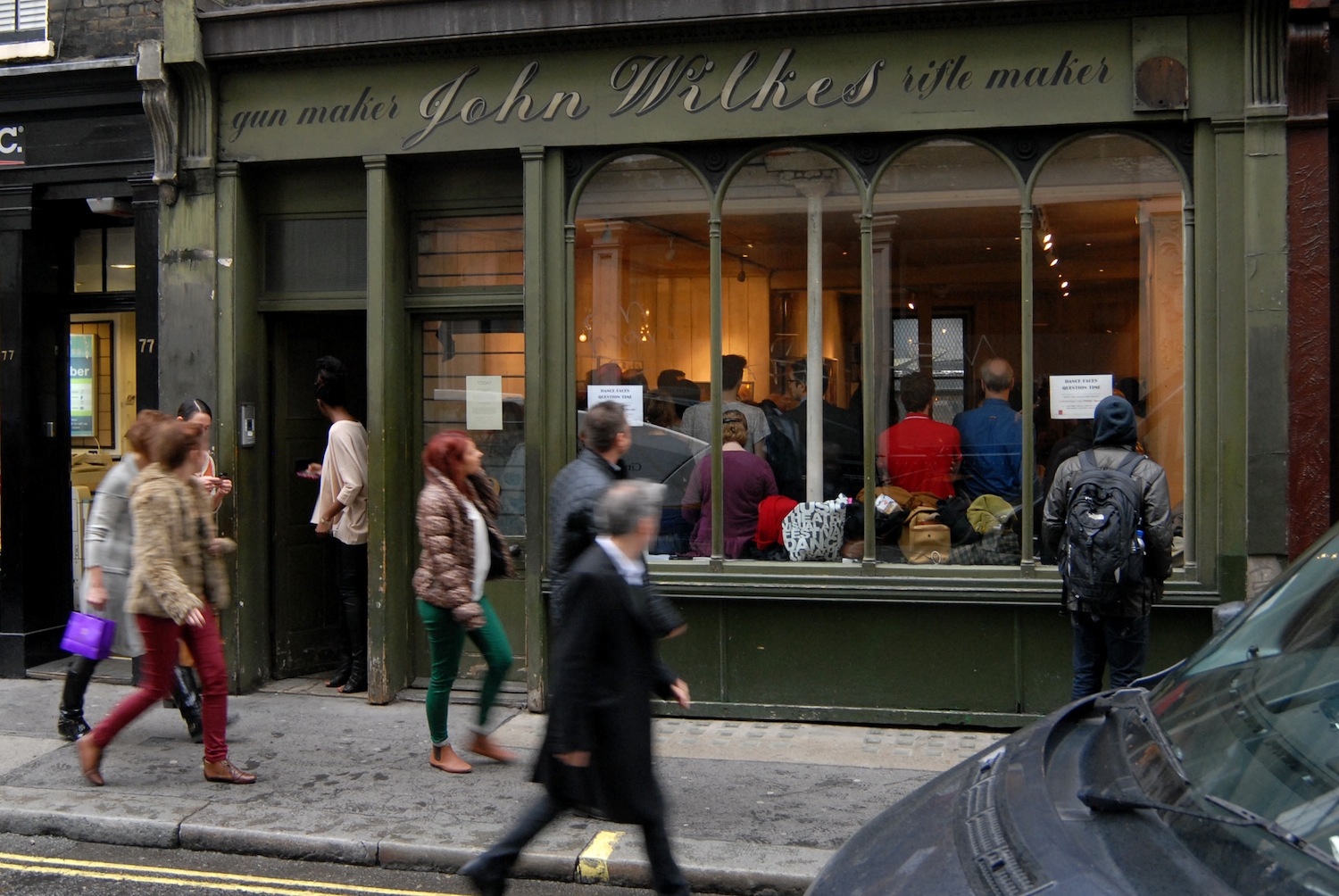 Curious passers-by in Beak Street stare into the gallery where the debate is being held