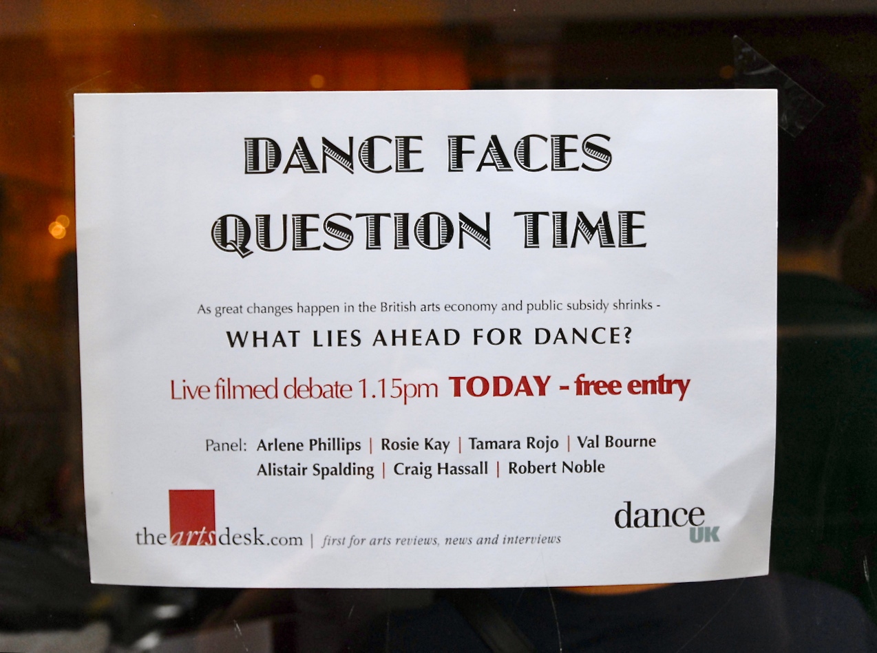 What lies ahead for dance as arts spending cuts bite? Can it survive the withdrawal of public funds that support dancers' training, choreographers' creativity, employment costs and health care? Is protest necessary? A panel of the British dance world's leading figures was brought together by theartsdesk for a major debate last Friday in central London, as dance faced its own Question Time.