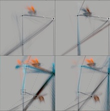 During rehearsals for Atomos (pictured above right), which his company Random Dance will perform at Sadler’s Wells in October, the dancers wore 3D glasses linked to a screen (main picture); known as Becoming, the software introduces an imaginary body in the form of a linear diagram unfolding in three dimensions. We are invited to don the glasses and view the diagram (detail pictured left), but although I regularly improvise movement sequences, I was unable to figure out how it would contribute.