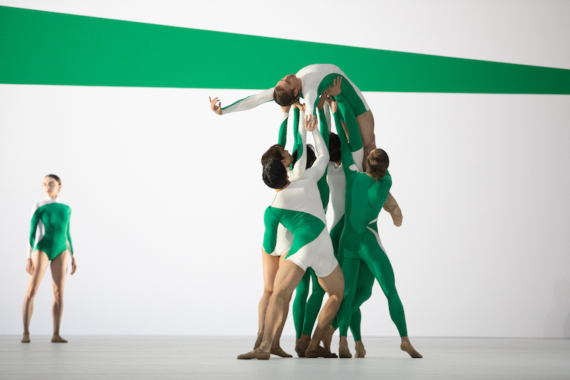 The introduction of 19 dancers into this vast sensual environment is bracing. Dressed (by Daniel Lee of Burberry) in unitards in different graphic permutations of green and white, it’s as if the bodies are ice shards that have briefly detached from Herrera’s painting. Everything connects. Too often in new ballets made for the Opera House main stage, detail gets lost in the vastness, perhaps because choreographers panic about filling the space and over-fill it, distracting the eye. McGregor, now a veteran of three decades of dance-making, boldly gives us less, and in this richly suggestive visual and aural context less is indeed more.
