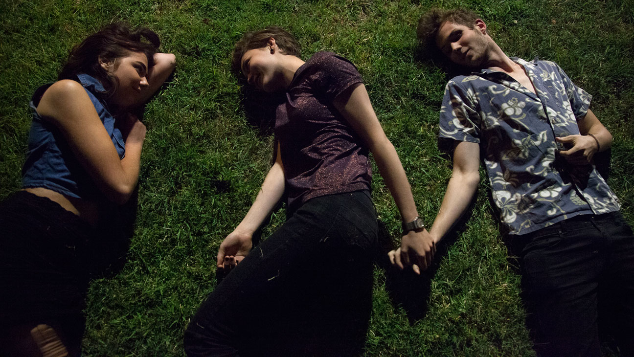 A new contact in Billie’s life, with schoolmates Josh (Sam Althuizen) and Jasmin (Imogen Archer), will become important. They’re slightly older (a factor that proves significant), and readily accept Billie into what becomes a close, complicated relationship, also explored through her camera. Initially she’s an observer-questioner, later becoming something of the voyeur, and finally a participant in this exploration of close companionship that nudges iinto the sexual (the three pictured above, Cobham-Hervey centre). The trio become as intimate as seems possible (though Billie hides her wider family drama from them – the theme of confiding and keeping secrets, or breaking them, and the repercussion for trust runs throughout 52 Tuesdays), and it’s at the emotional rather than the physical level that complications precipitate crisis.