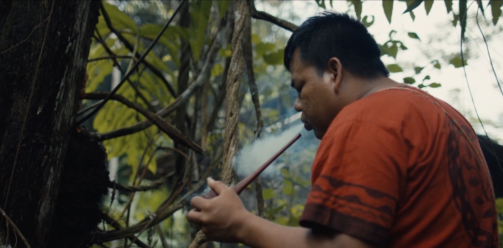 Manari Ushigua flies to New York to take part in a climate change protest. As he looks down over the rainforest, he remarks “it’s up to us spiritual leaders to protect the earth’s resources. When we drink Ayahuasca, the spirits see us and they give us the patience and strength to continue defending this place. The West sees the forest only as material to extract, while we see it as a collective consciousness. The spirits have told us we have only one chance left to save ourselves. Our destruction is in our own hands.”