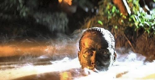 The chopper blades in his mind merge with those of the ceiling fan in his Saigon hotel room. There’s a close-up of the fire, before the face of a great stone Buddha - ancient and impenetrable - appears on the right, a cautionary juxtaposition. The very last shot of the film sees Willard’s face blend with that of the Buddha, part of the jungle temple lair of Willard’s quarry, Colonel Walter E Kurtz (Marlon Brando). It’s as if Willard, having embraced “the horror”, like Kurtz, his secret sharer, has been absorbed finally by the jungle, "the heart of an immense darkness". Alienated from home at the start of the film, where the hell else was he going to go?