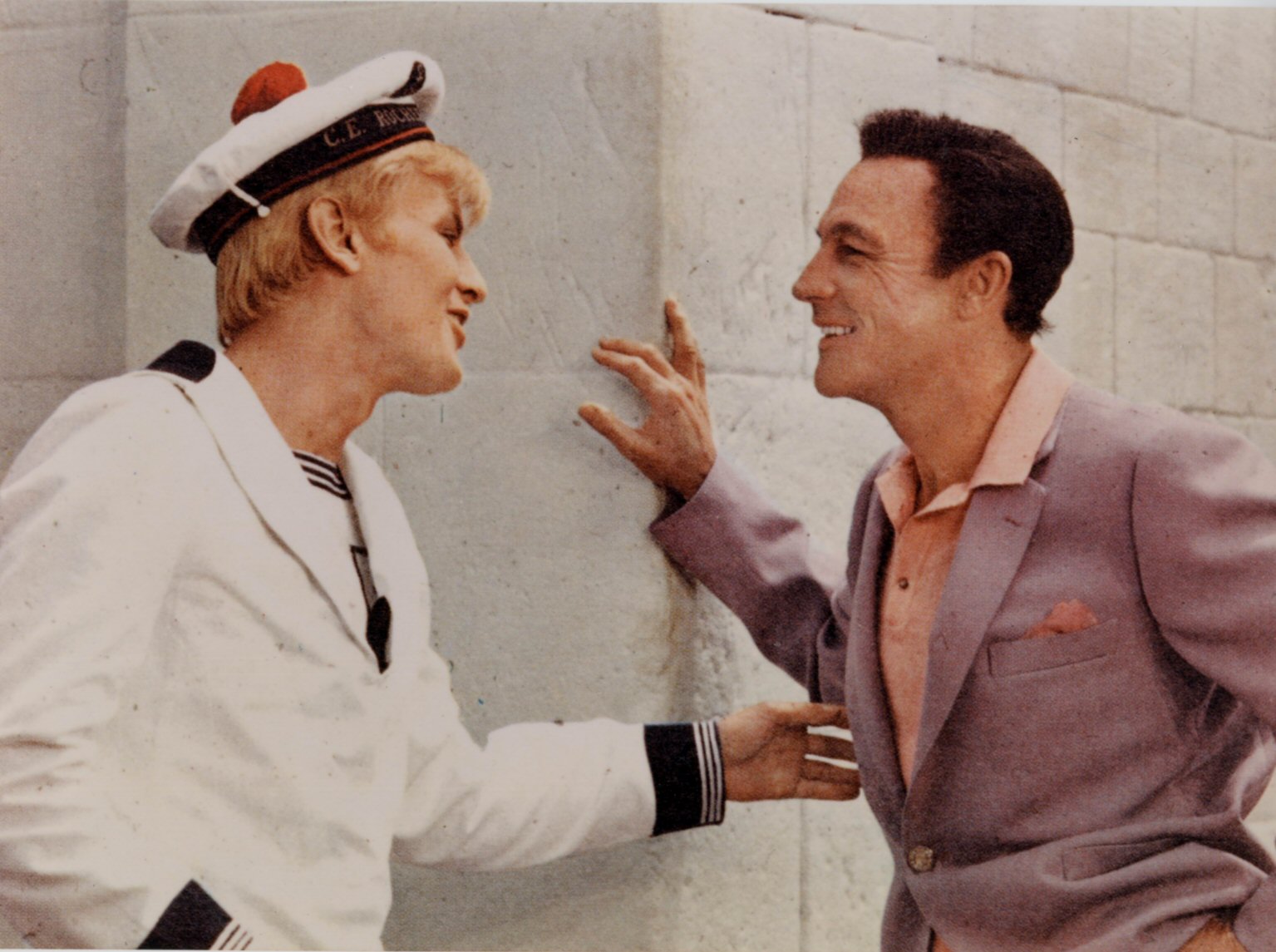 Deneuve’s Delphine splits up with her arrogant art dealer boyfriend in search of an ideal man, who turns out to be sailor and wannabe artist Maxence (Jacques Perrin, pictured above with Kelly), whose portrait of an ideal woman looks just like her. Meanwhile, Solange (Dorléac) falls for Kelly’s composer Andy Miller after a chance meeting, a visiting friend of music shop owner Simon Dame (Piccoli), whose unfortunate surname caused a rift with a lover who didn’t wish to become Madame Dame. Confused? You won’t be. Things are resolved with last minute pantomimic neatness, one thread only tied up in the closing seconds. The plot is secondary to the overall mood, Demy describing Les Demoiselles as “a light film about serious things.” It’s glorious: melancholy, wit and profundity concealed within a soufflé-like exterior. Deneuve and Dorléac’s climactic dance number is spectacular, and the piano concerto finale which Legrand provides for Dorléac is an earworm I’ll happily live with.
