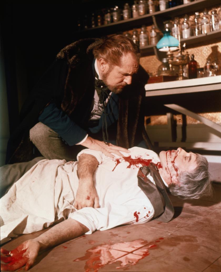 Reeves and Wicking’s most significant reworking of Lawrence Huntingdon’s original script roots the horror in colonial crimes. Hessler makes the wild prologue of a half-glimpsed white man’s African crucifixion and ritual disfigurement a riot of fish-eyed distortion and contorted close-ups of a red-eyed, knife-wielding shaman, a ceremony interrupted by Julian, who cries out for his brother. Back in his English country manor, Julian chains crazed Edward in a secret room, and plans to sell his African plantation “before it’s too late”. “I’ve seen what Africa can mean,” he tells innocent young wife to be Elizabeth (Witchfinder General’s female lead Hilary Dwyer), “and what we’ve come to mean to Africa.” Edward has meanwhile imported witch doctor N’Galo (Harry Baird) to place him in a death-like trance then revive him from his grave.