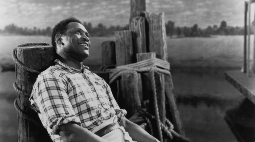 Imagining an actor other than Robeson playing the riverboat worker Joe is impossible. Early in the movie this nonchalant godhead ruminates on his people’s recent past as he sings “Ol’ Man River" in his melancholy bass baritone as John J. Mescall’s camera spirals around him – Whale intercutting “memories” of Joe and other formerly enslaved Africans and their descendants effectively "toting barges and lifting bales" like so many Sisyphuses. Robeson’s rendition gives the lie to the good-natured complaints of Joe's wife Queenie (McDaniel) that he’s a lazy good-for-nothing and iterates the song’s bitter metaphor: ol’ man river just keeps rollin’ along as the suffering of blacks continues.