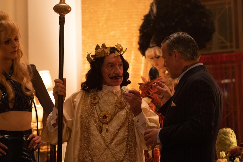 As if there weren’t enough over-the-top stuff going on in New York’s sybaritic beau monde of the 1970s, the movie finds even more at the St Regis Hotel, where Dalí is blowing through $20,000 a month on parties, painting people’s bottoms, more parties, putting Alice Cooper in a hologram, and more parties.