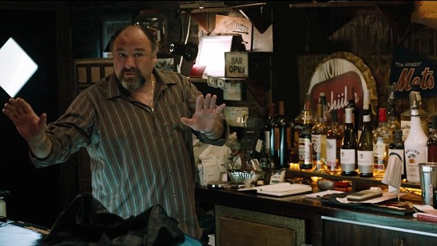 Bob responds with what – in hindsight – you realise is a professional dead bat. He seems determined to keep his profile low and his thoughts to himself. He's no longer in "the life", he protests, he just serves in the bar. When a couple of masked hoodlums bust in one night and rob Marv's, Bob remains the picture of passivity (Gandolfini in Cousin Marv's, above).